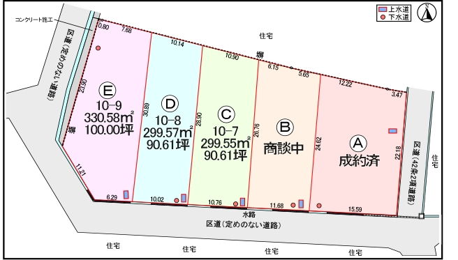 C~Eを販売中です。B区画は商談中です。